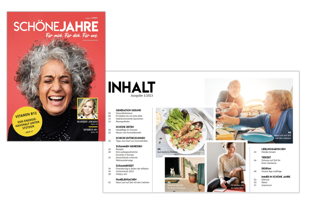 Das beliebte Magazin „SCHÖNE JAHRE – Für mich. Für dich. Für uns.“ bedient vielfältige Themenbereiche für die Leserschaft im besten Alter – von Familie und Gesundheit, über Neues aus der digitalen Welt bis hin zu Kochen und Genießen.