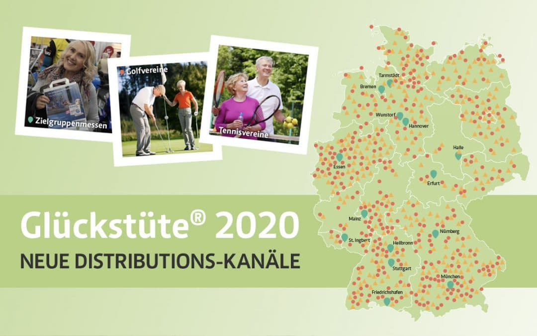 Die Glückstüte® der Deutschen Seniorenwerbung besteht bereits seit 2012. Seitdem wird das Samplingmedium für die Zielgruppe 50plus auf ausgesuchten Messen bundesweit persönlich an die Besucher im besten Alter überreicht. Im kommenden Jahr erhält sie zwei neue bundesweite Verteilkanäle. 2020 wird sie neben den Zielgruppenmessen zusätzlich in Golfclubs und Tennisvereinen platziert. Der Versand erfolgt hier über Markenbotschafter, die das Produkt an ihre Vereinsmitglieder weitergeben.