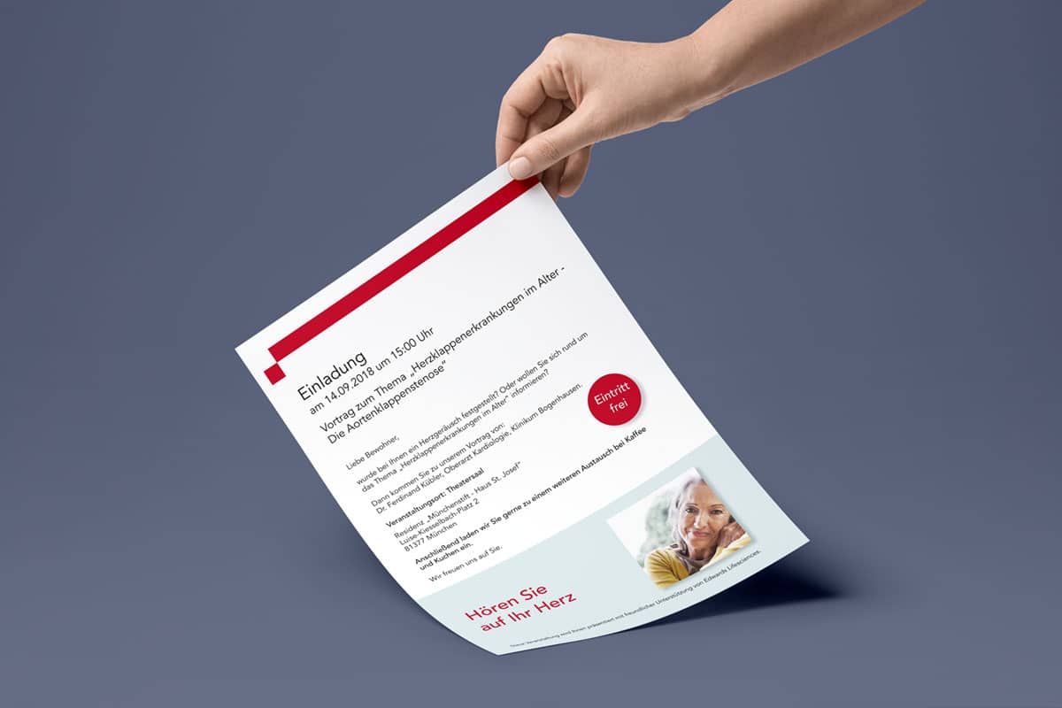 Das Unternehmen Edwards Lifesciences beauftragte die DSW mit der Kommunikation, Durchführung und der Begleitung einer Vortragsreihe mit integrierter Personalpromotion in Seniorenresidenzen. Neben der Kommunikation mit den Vor-Ort-Verantwortlichen sowie der Buchung und Ausstattung eines Promotionteams entwickelte die DSW Kommunikationsmittel wie (personalisierte?) Einladung und Veranstaltungsplakate. Die DSW übernahm auch deren Druck und Verteilung. Zudem begleitete sie am Tag der Veranstaltung die Aktion mit einem speziell geschulten Vor-Ort-Team.