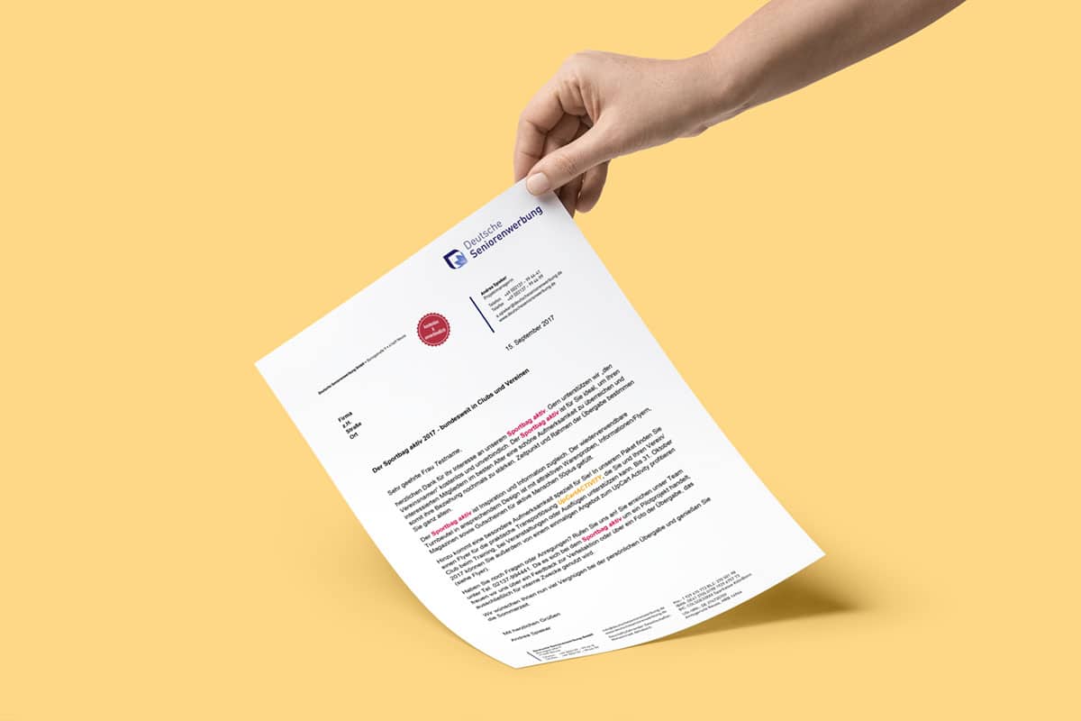 Die DSW erarbeitete ein Dialogmarketing-Konzept mit integriertem Sampling über ihr in 2017 neu entwickeltes Produkt Sportbag aktiv. Dieser wird durch Markenbotschafter, das heißt Kursleiter und Vorsitzende von Sportvereinen, unentgeltlich an die Vereinsmitglieder übergeben. Diese Multiplikatoren werden im Vorfeld angesprochen und von den zu sampelnden Produkten überzeugt. Der Sportbag aktiv enthält attraktive Give-aways, perfekt zugeschnitten auf die sportlich-aktive Zielgruppe 50plus, und wird persönlich überreicht.
