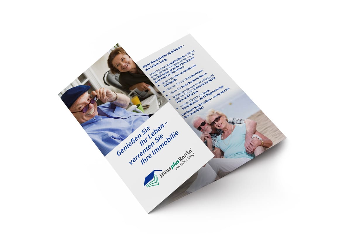 Die DSW entwickelte für HausplusRente ein ganzheitliches Marketingkonzept, mit dem sich das Unternehmen neu im Markt positionierte. Die Kommunikation umfasste alle Kanäle: ein Re-Design des Logos, die Entwicklung eines neuen Claims, den Relaunch der Webseite sowie die Neugestaltung der bestehenden Broschüre und des Flyers. In einem Foto-Shooting entstanden die Bilder für den neuen visuellen Auftritt.
